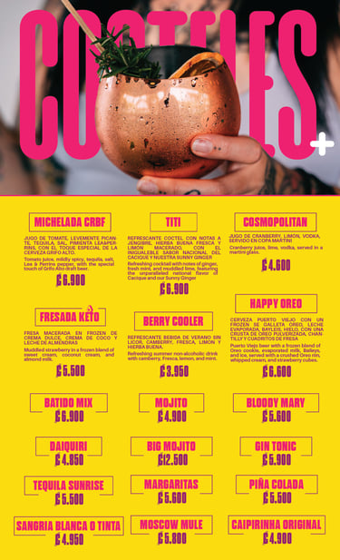 Un menú tan variado como creativo, atrévete a experimentar y acompaña siempre con una buena bebida... Al fin y al cabo no hay buena comida sin buena bebida y no hay buena bebida sin buena comida! Provecho!